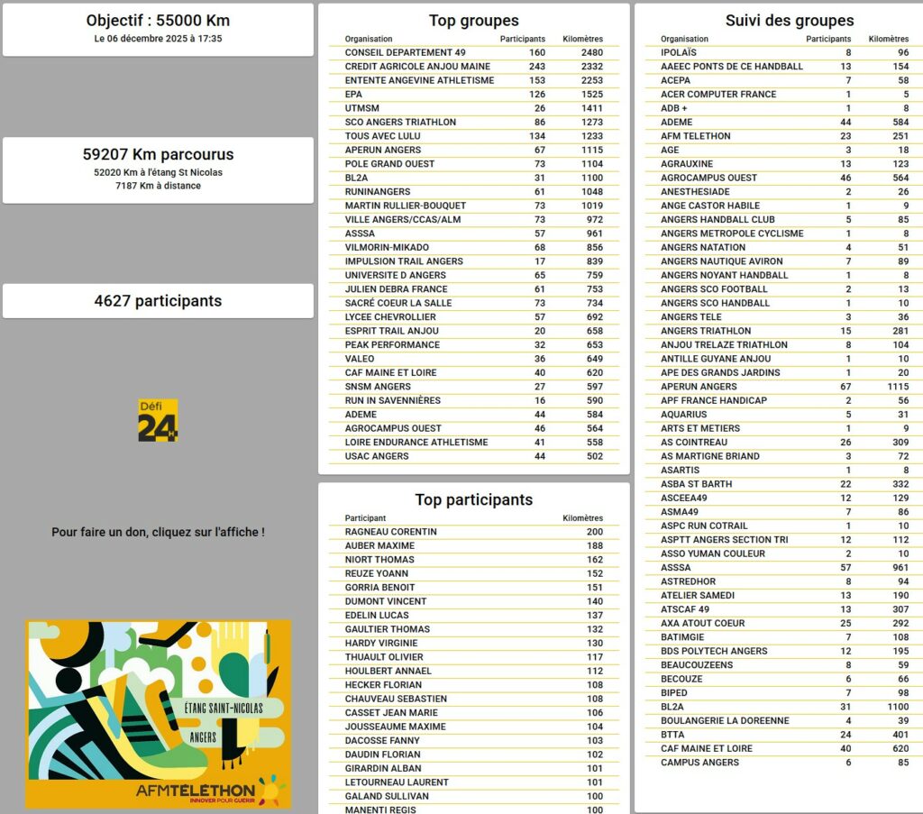 Le « défi24H » se déroulera du vendredi 5 décembre 2025 (16h) au samedi 6 décembre (16h) soit à l’étang St Nicolas à Angers, soit autour de chez vous (partout en France et dans le monde) !